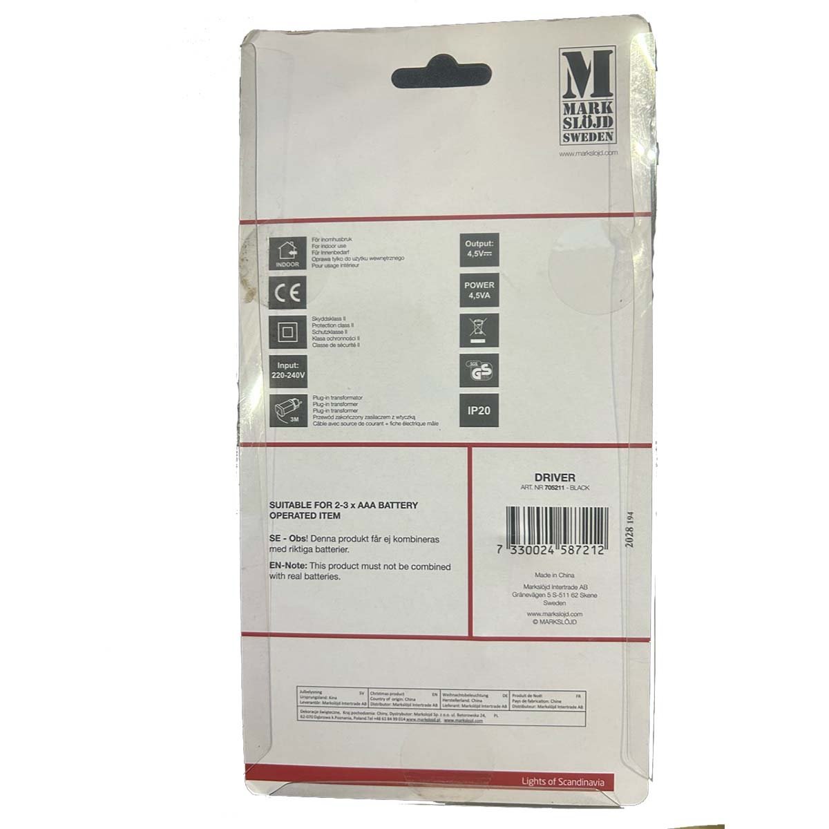 Adapter 2-3xAAA 230V zasilający światełka na baterie DRIVER 705211 Markslojd