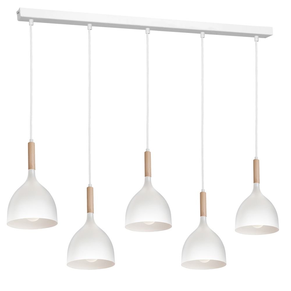 Biała lampa wisząca na listwie 5-punktowa NOAK WOOD 3711 Luminex