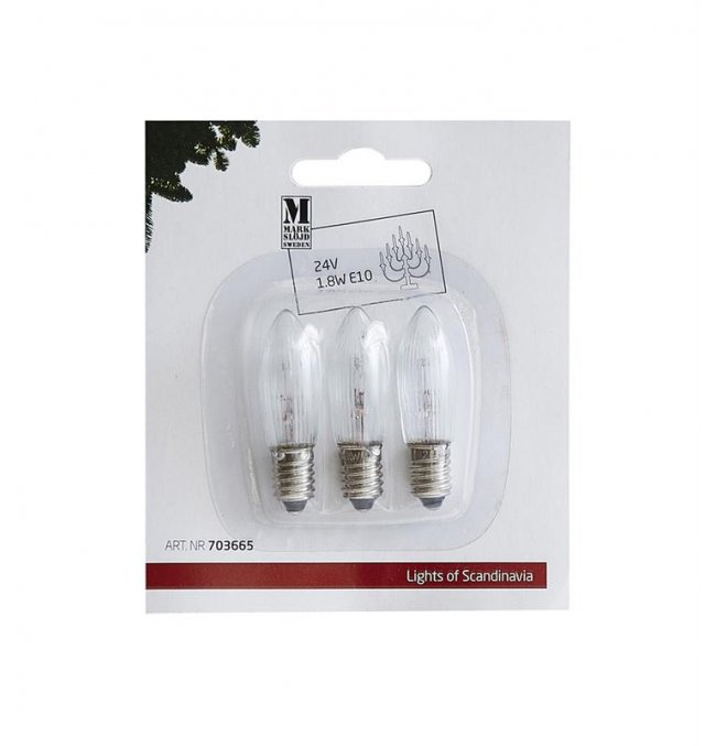 Blister x3 zapasowe żarówki E10 24V 1.8W przezroczysta BULB 703665 Markslojd