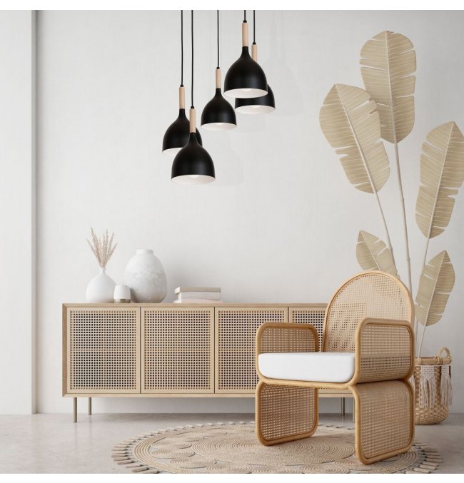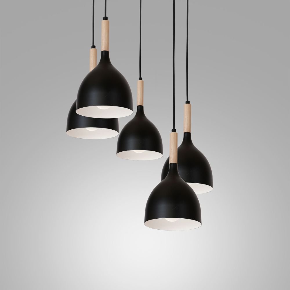 Czarna lampa wisząca 5-punktowa na okręgu NOAK WOOD 1878 Luminex