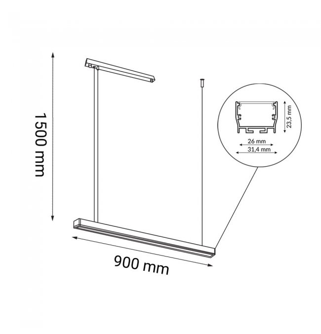 Czarna liniowa lampa wisząca listwa LED 18W 4000K 90 cm HIATE 1846 Antigo