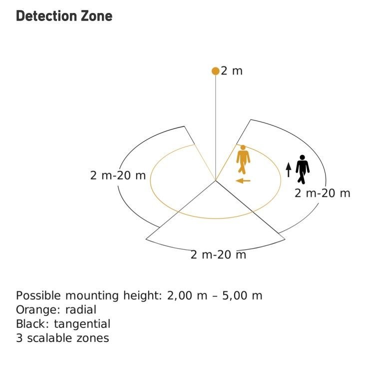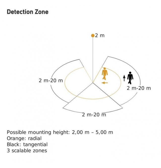 | Odległość wykrywania przez czujnik (m): | 3 strefy 2-20 |