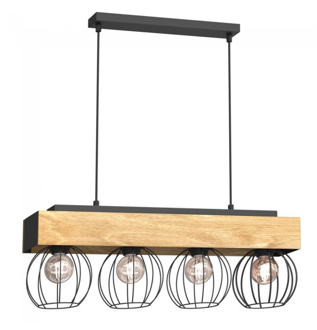 Drewniana lampa wisząca z czterema drucianymi kloszami MENTON 1641 Luminex