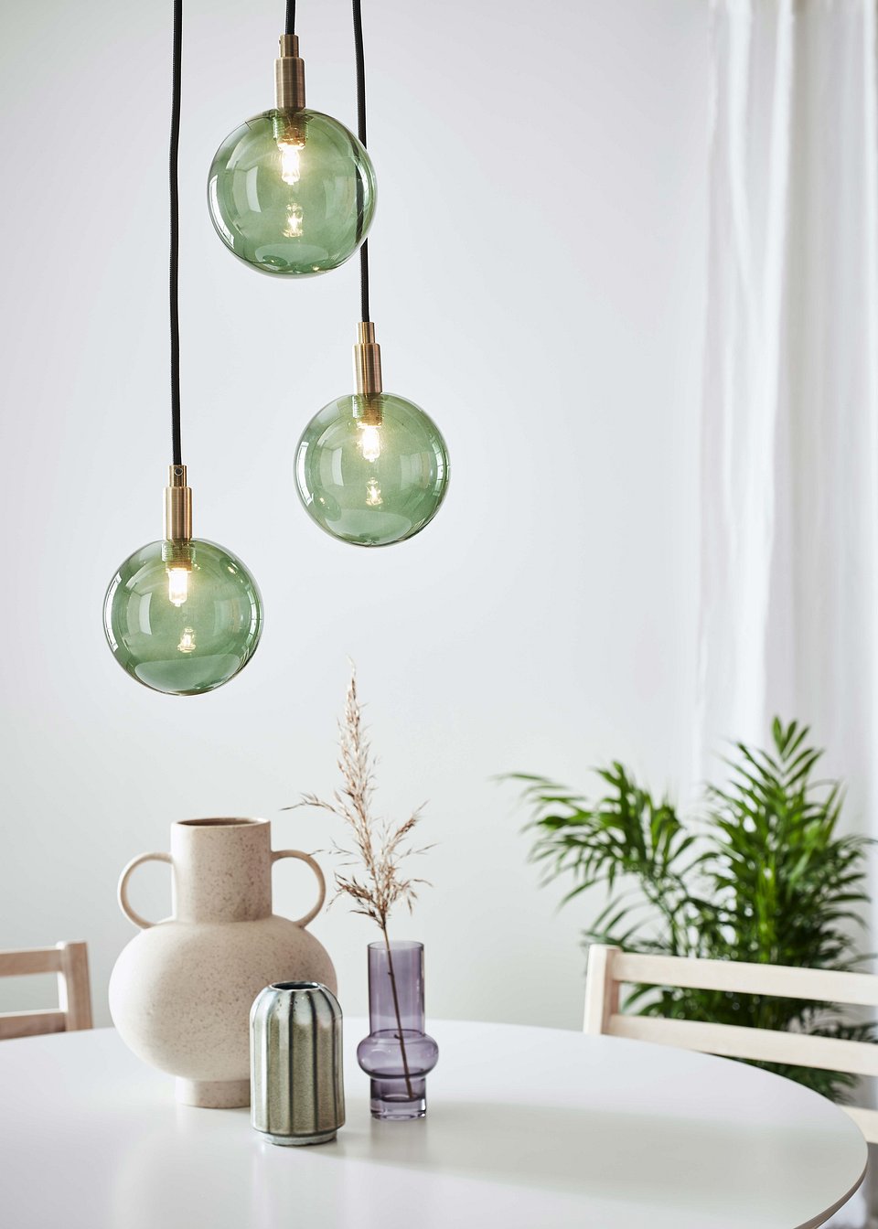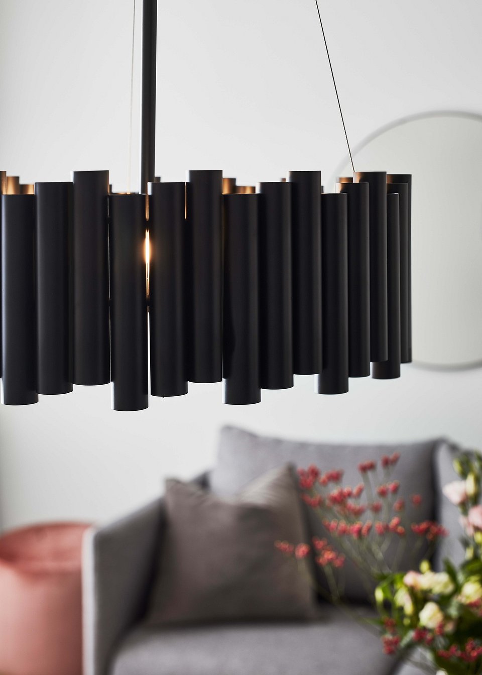 Efektowne lampy Merlot przyciągają uwagę swoimi kloszami kształtu winogrona. Do wyboru mamy kolor złoty, albo czarny i nie zapominamy także o możliwościach regulacji ułatwiającą dopasowania lamp pod wybrane pomieszczenie. Rozwija temat kul lampa wisząca Here, w której znajdziemy bardzo ciekawą funkcjonalność w wyglądzie zwisającego wyłącznika. Taka funkcjonalność pozwala na przykład na wykorzystanie danych lamp na przykład, jako lamp nocnych.
