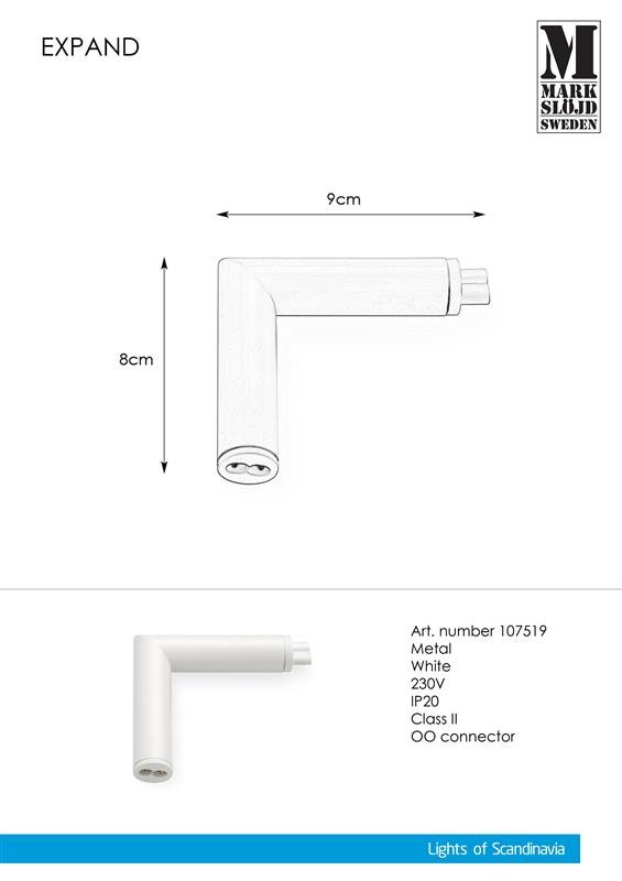EXPAND Łącznik narożnik Biały 107519 Markslojd