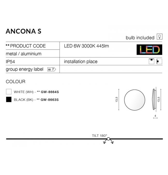 | Maksymalna moc żarówki (W): | 6 |