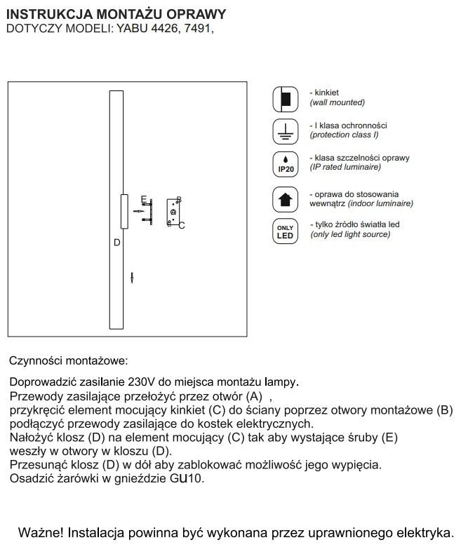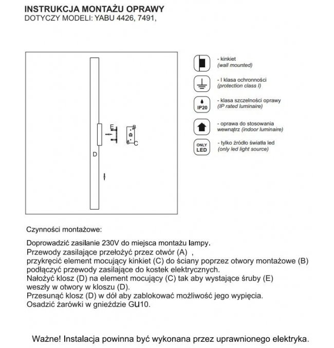 | Maksymalna moc żarówki LED (W): | 5 |