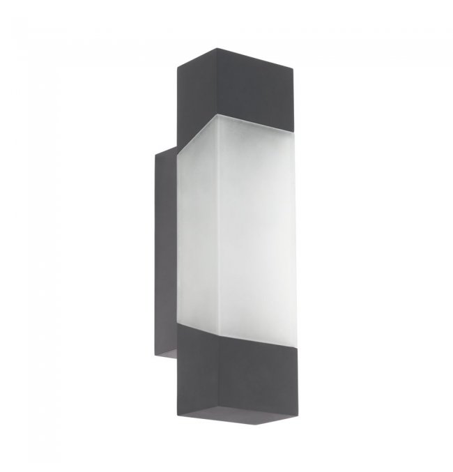 Nowczesna lampa ścienna zewnętrzna, kinkiet ogrodowy LED serii GORZANO. Podstawa wykonana z aluminium, w kolorze antracytowym. Źródło światła to moduł LED, o mocy 4,8W, które emituje ciepłą barwę światła. Klasa szczelności: IP44.