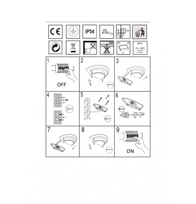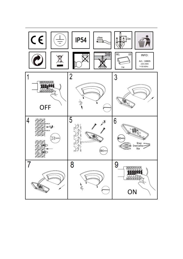 | Maksymalna moc żarówki (W): | 7 |