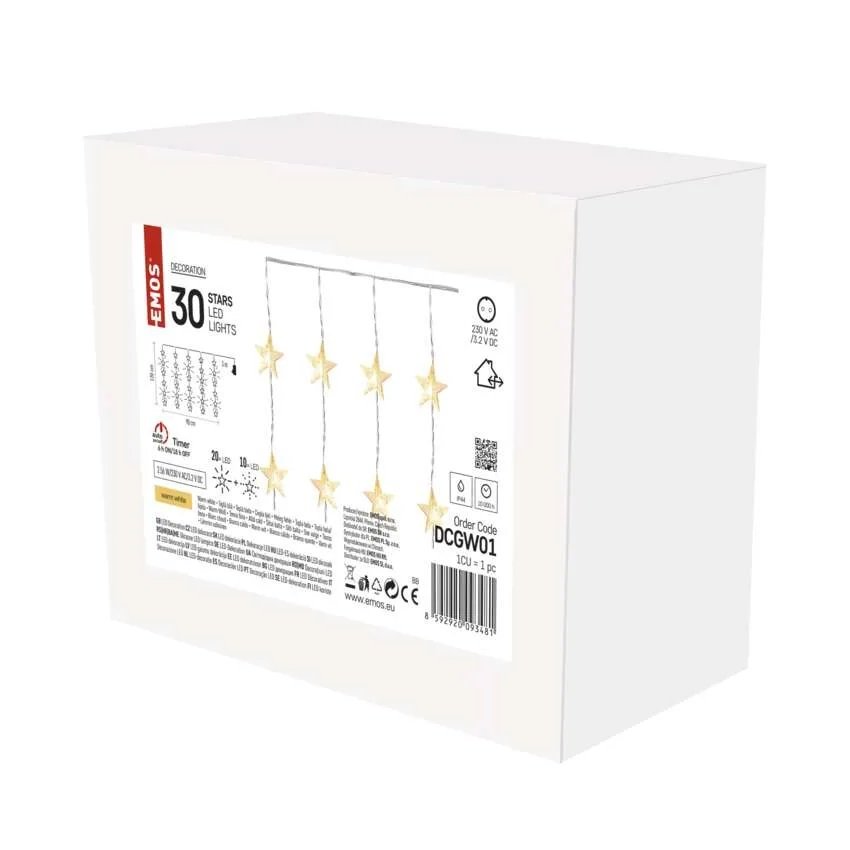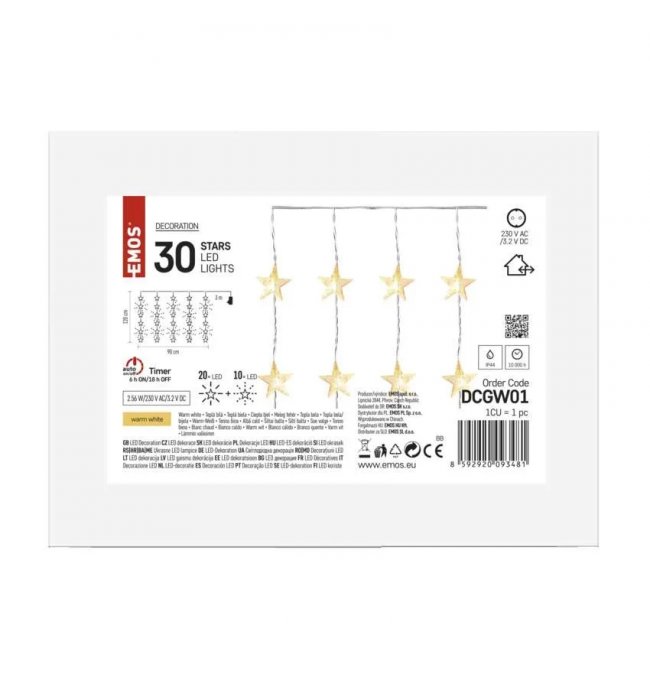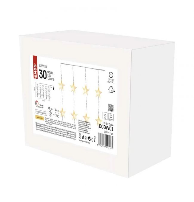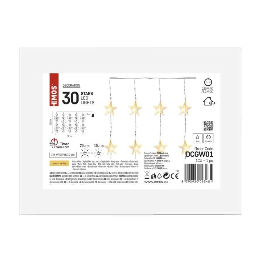 Kurtyna świetlna IP44 migające gwiazdki 30 LED 90x120cm ciepła biel DCGW01 EMOS