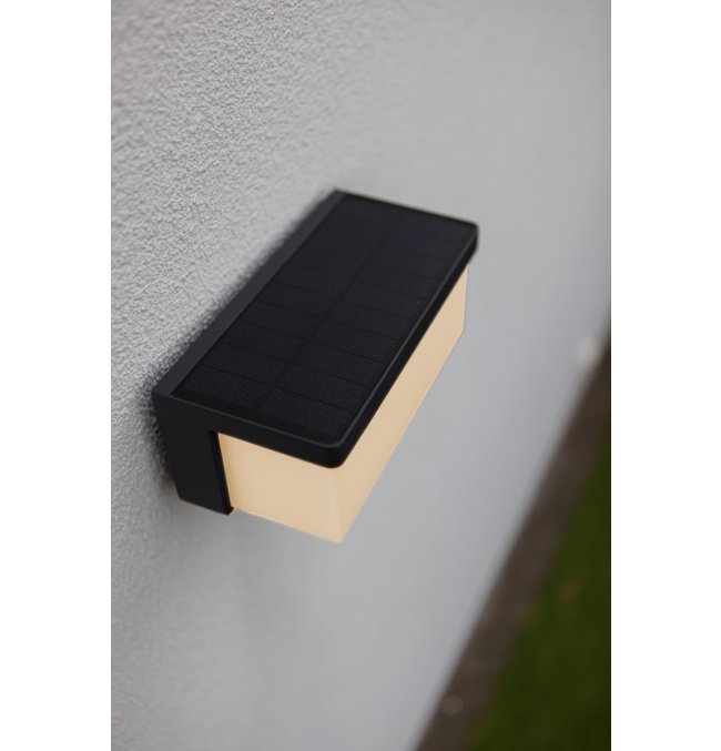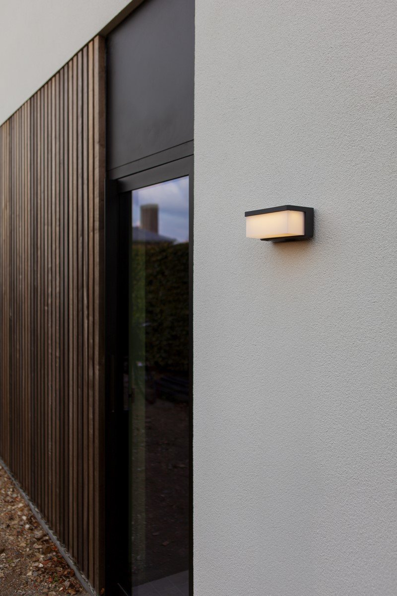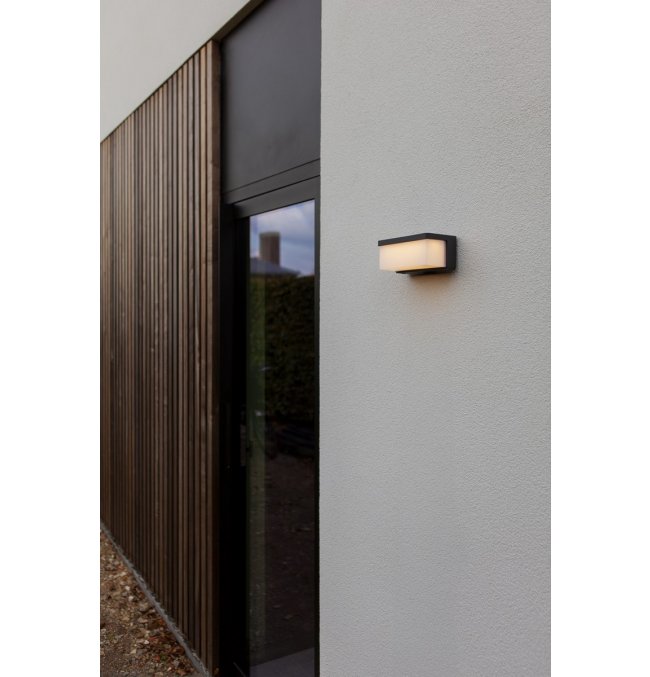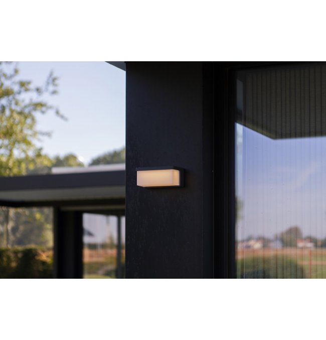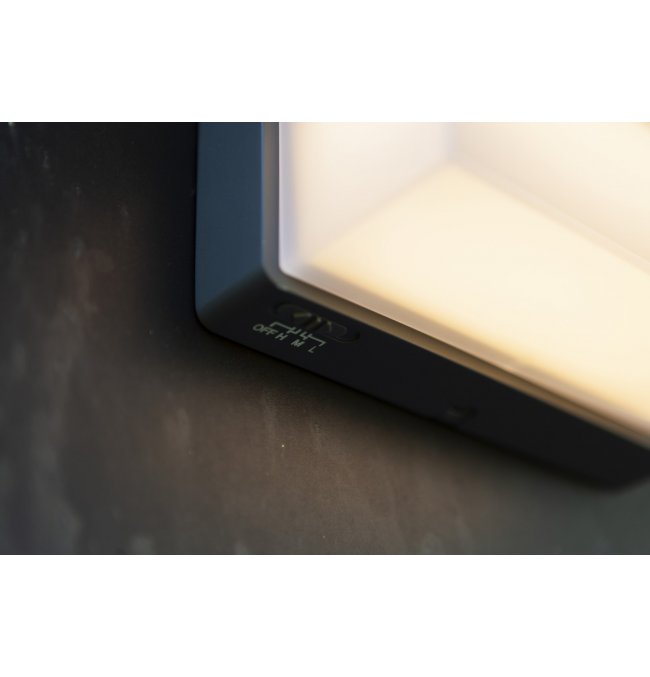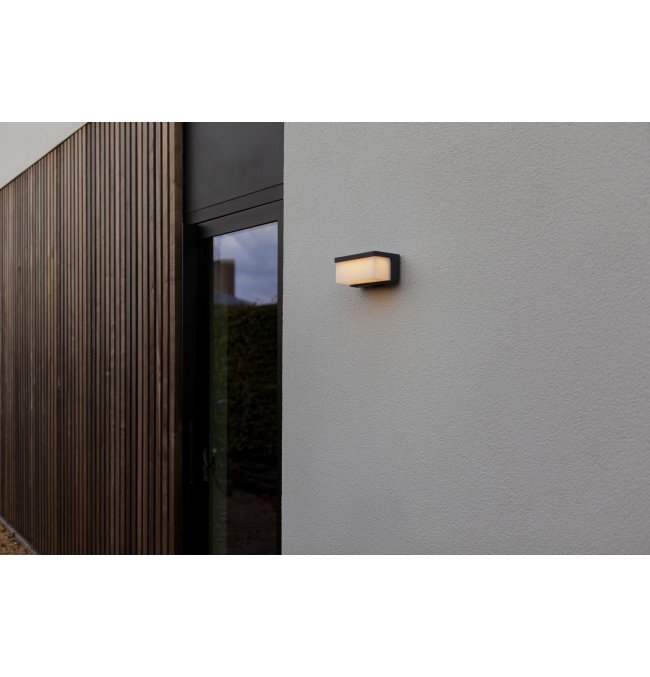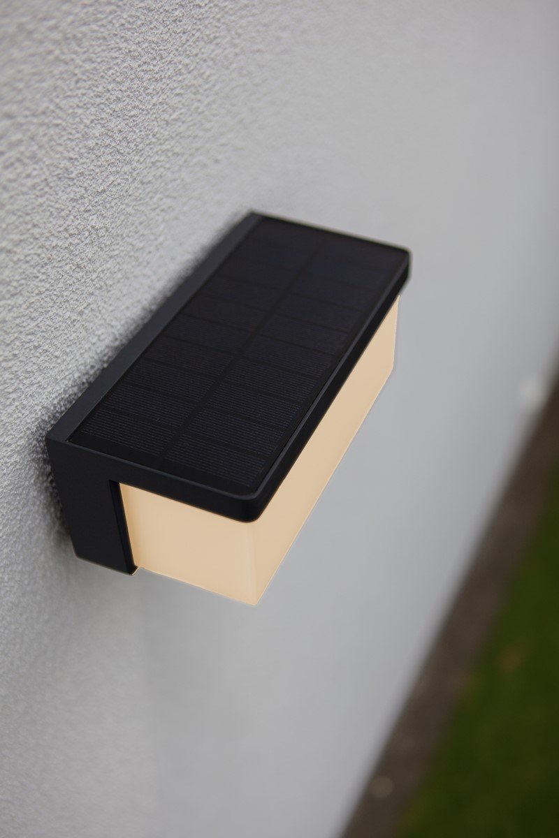 Hybrydowy kinkiet solarny ZELNA, czerpiący inspirację z projektu DOBLO, oferuje zrównoważone i stylowe rozwiązanie w zakresie oświetlenia zewnętrznego w wyrafinowanym ciemnoszarym wykończeniu.