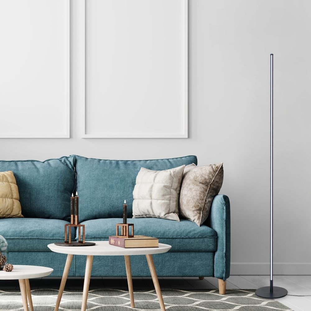 Lampa stojąca Luigi jest polecana osobom, które chętnie wybiorą do salonu naprawdę zaskakujący model, różniący się od tradycyjnych lamp stojących. Ze względu na niewielki rozmiar lampa Luigi jest idealnym wyborem do mniejszych pomieszczeń. Długi, cienki słup wykonanej z metalu lampy w kolorze czarnym nie jest tym czym się wydaje, więc nie ma również dołączonej głowicy. W tym przypadku elementem świecącym jest słup lampy. Stabilność lampy Luigi zapewnia okrągła, płaska podstawa, biały klosz jest wykonany z tworzywa sztucznego. Lampa stojąca posiada wbudowane źródło światła LED klasy energetycznej G o mocy 18 W, strumieniu świetlnym z kloszem - 1050 lumenów, bez klosza - 1930 lumenów. Trwałość źródła światła wynosi 25.000 godzin. Źródło światła ma temperaturę barwową 3000K, co oznacza, że lampa świeci ciepłobiałym światłem, tworząc w pomieszczeniu przytulną, domową atmosferę. Wymiary lampy stojącej Luigi są następujące: wysokość 1465 mm, średnica otworu montażowego 200 mm, dlugość przewodu 2200 mm.