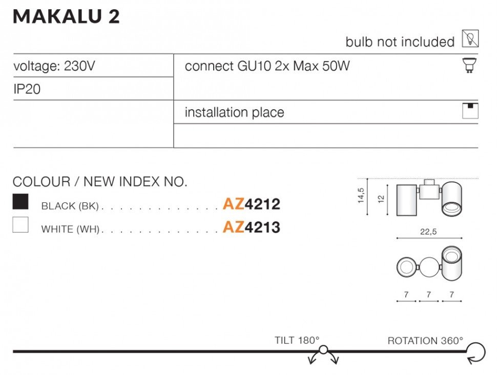 | Maksymalna moc żarówki (W): | 50 |