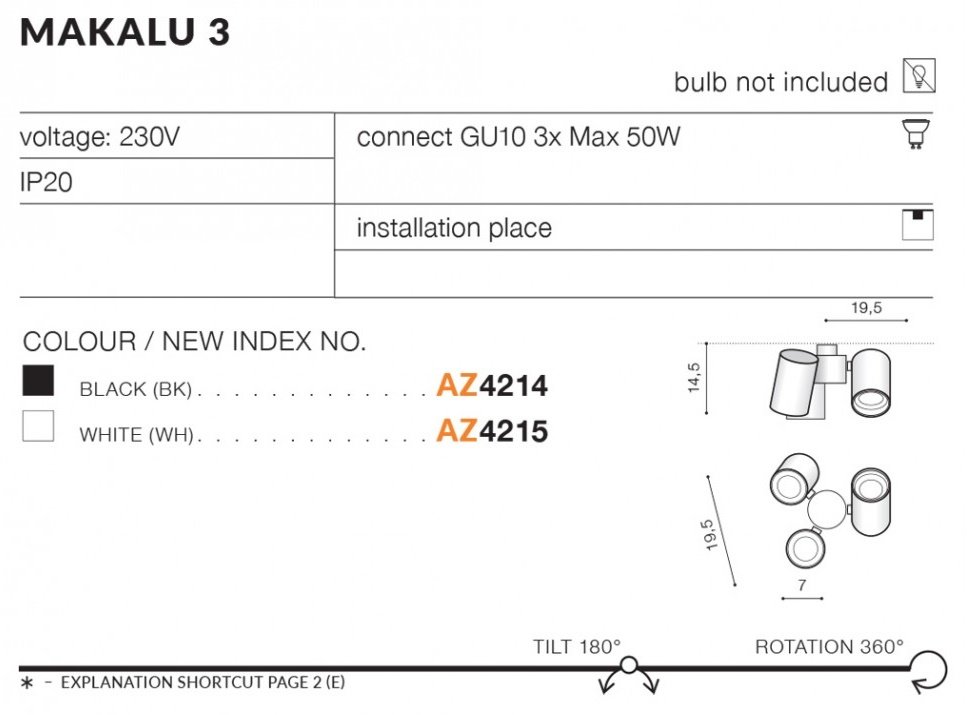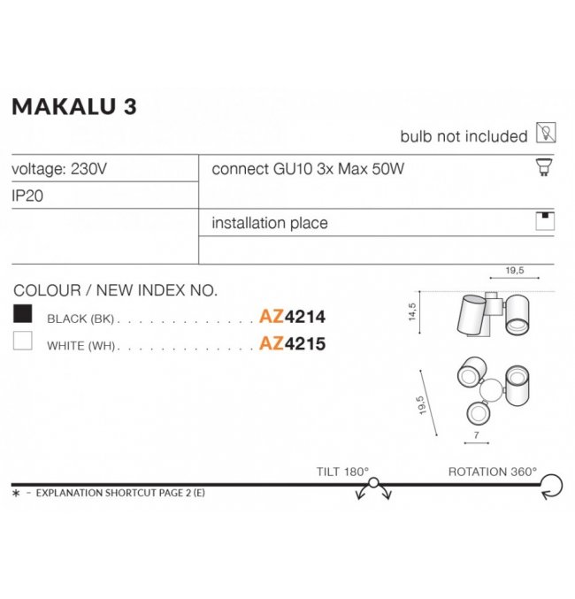 Lampa reflektor spot MAKALU 3 AZ4214 Azzardo