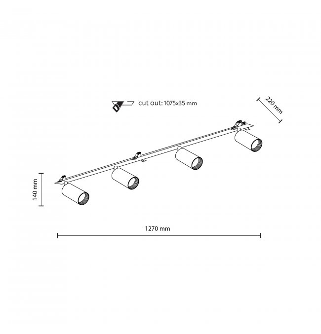 Lampa reflektor spot poczwórny podtynkowy AMIS BLACK 10809 TK Lighting