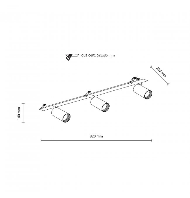 Lampa reflektor spot potrójny podtynkowy AMIS BLACK 10808 TK Lighting