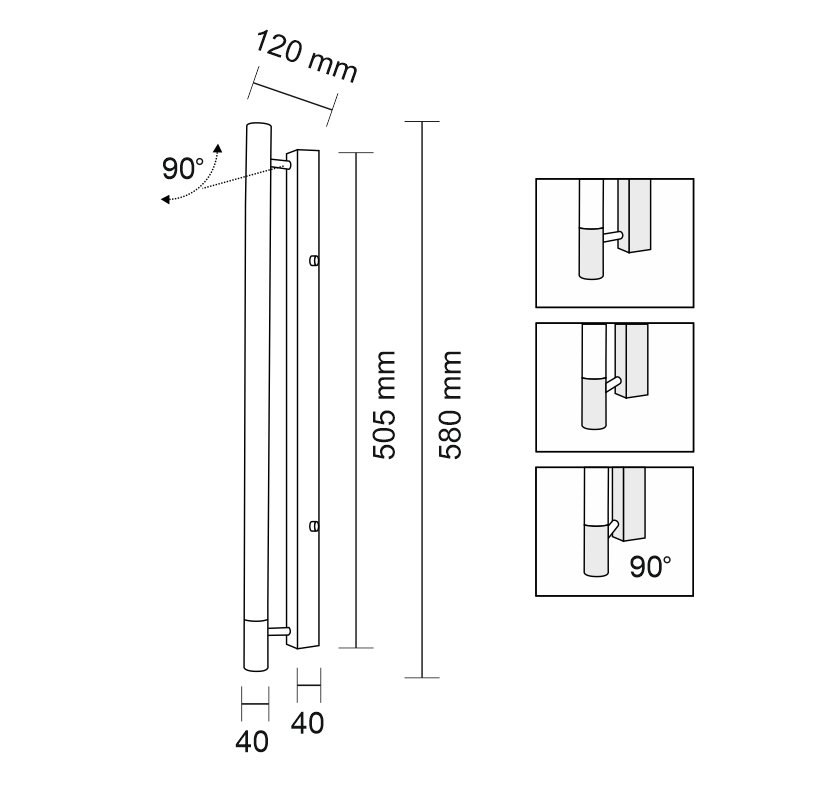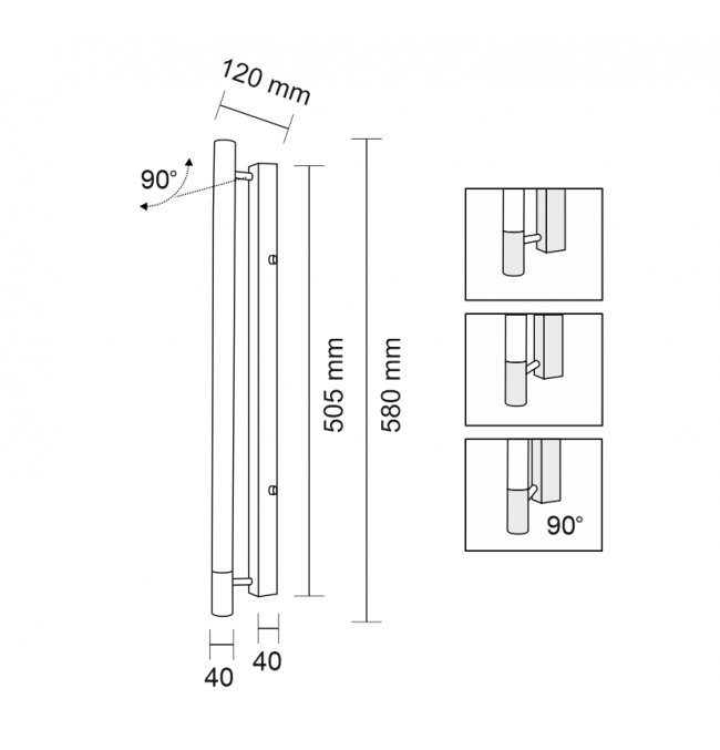 | Kąt regulacji (°): | 90 |