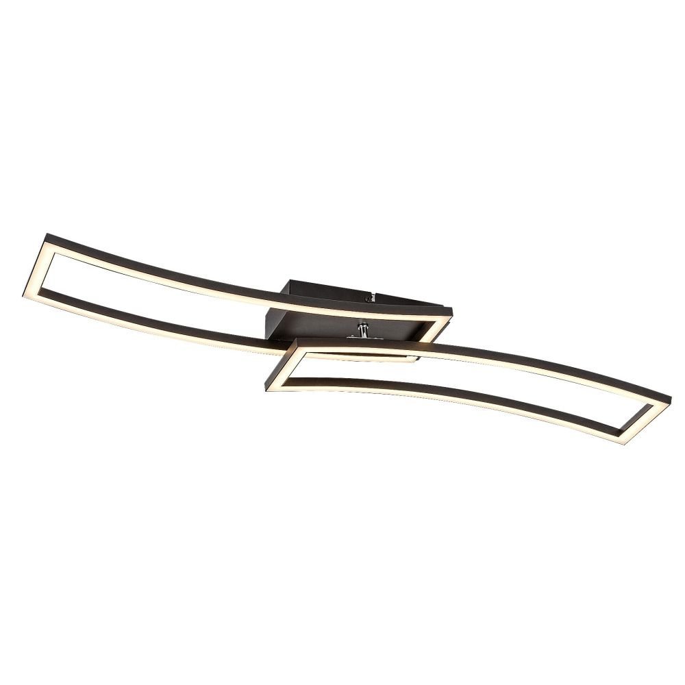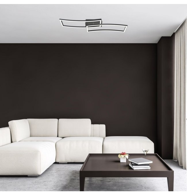 Oprawę sufitową Cirilla polecamy osobom, które pragną mieć w swoim salonie oprawę o nowoczesnym wyglądzie i dużej jasności. Wykonana z metalu i tworzywa sztucznego oprawa w kolorze czarnym jest uzupełniona białym kloszem z tworzywa sztucznego i może być przymocowana do sufitu za pomocą dużej prostokątnej podstawy dekoracyjnej. Podstawa dekoracyjna jest połączona z dwoma łukowatymi, prostokątnymi elementami oprawy skierowanymi na boki, przypominającymi fale. Oprawa Cirilla posiada wbudowane źródło światła LED klasy energetycznej G o mocy 40 W, strumieniu świetlnym z kloszem - 3180 lumenów, bez klosza - 4000 lumenów. Trwałość źródła światła wynosi 25.000 godzin. Oprawa ma temperaturę barwową 3000K, co oznacza, że świeci ciepłym światłem, tworząc w pomieszczeniu przytulną, domową atmosferę. Wymiary oprawy są następujące: szerokość 820 mm, wysokość 200 mm, odległość od ściany lub sufitu 80 mm.