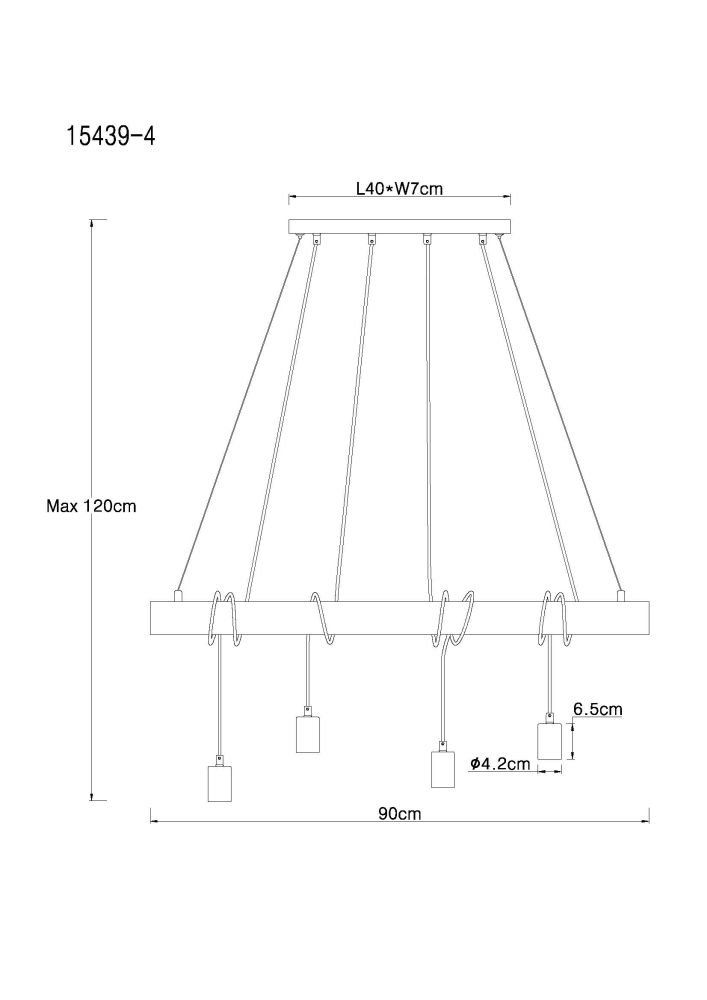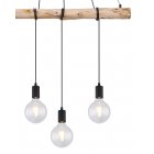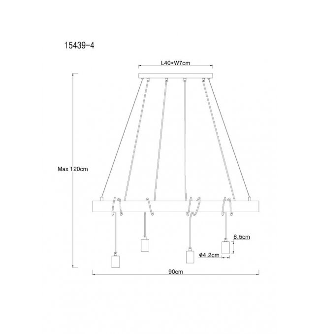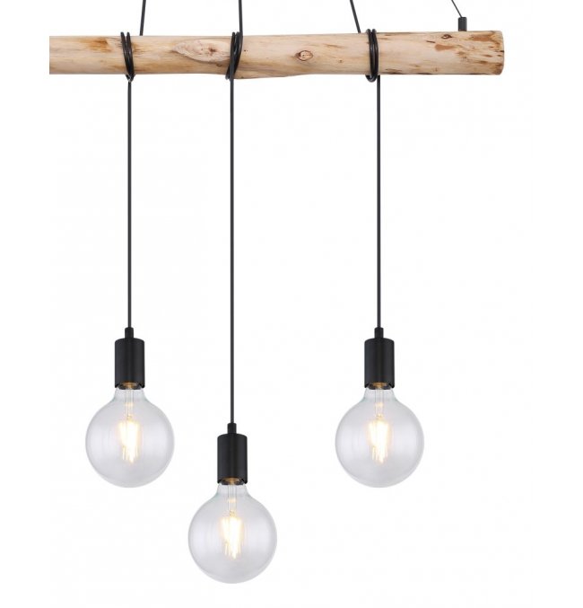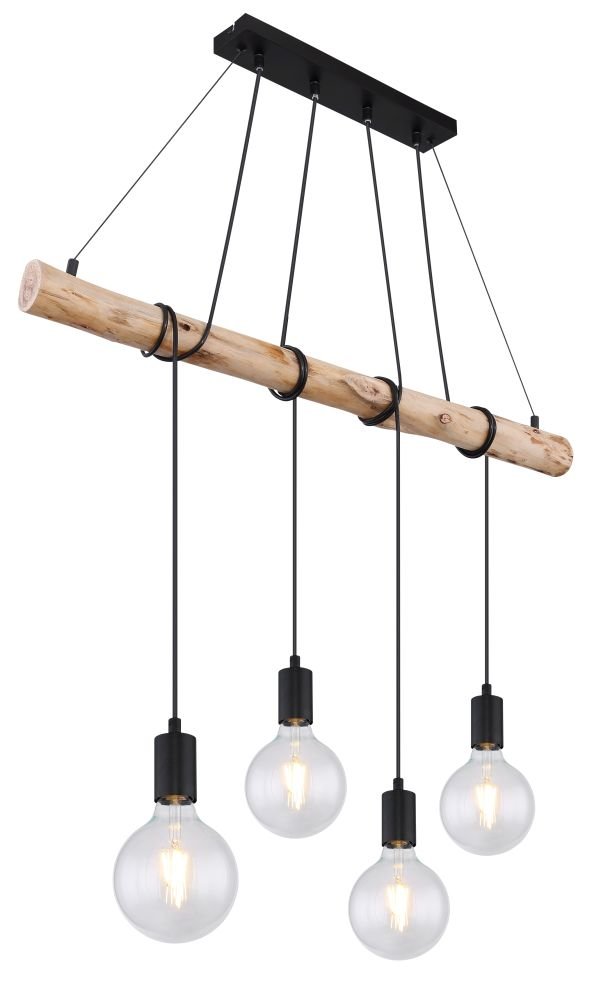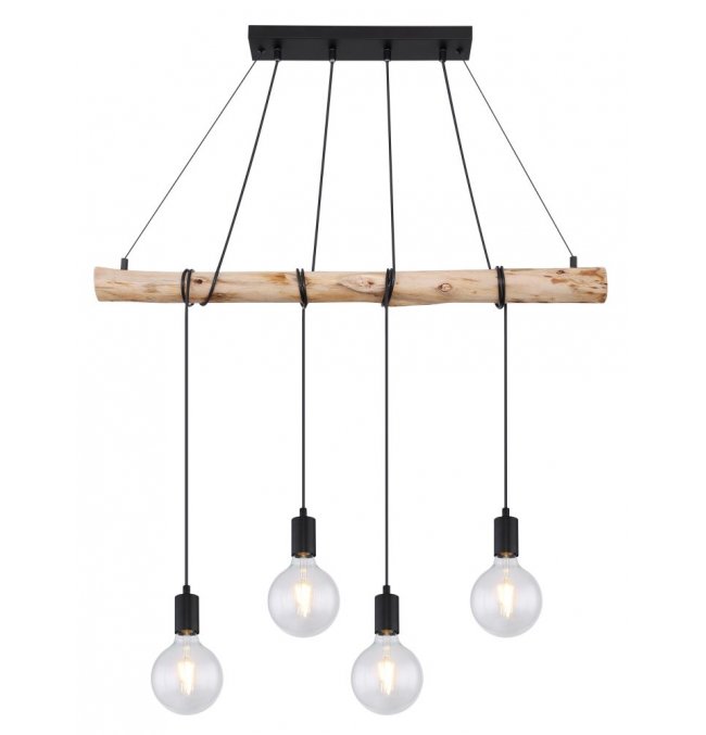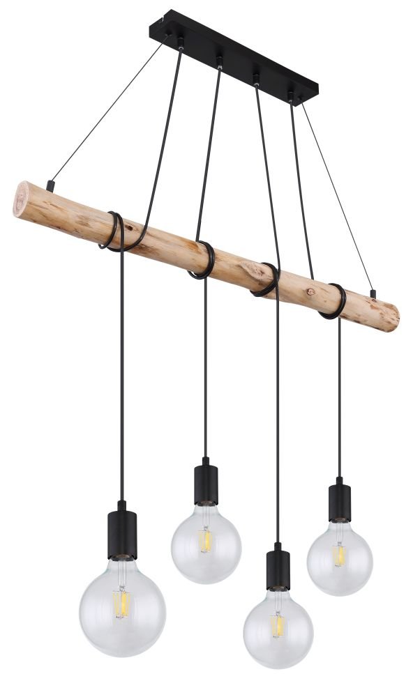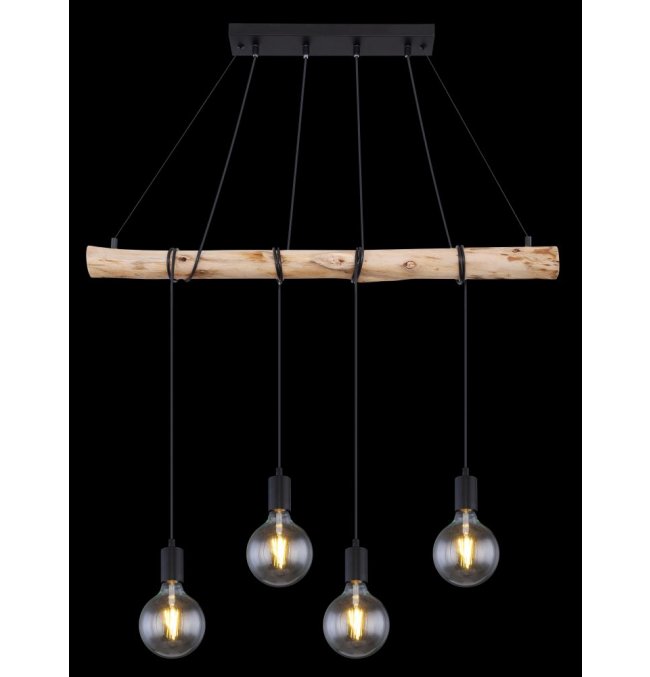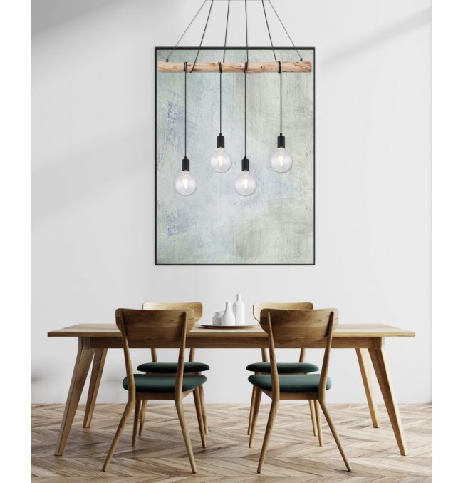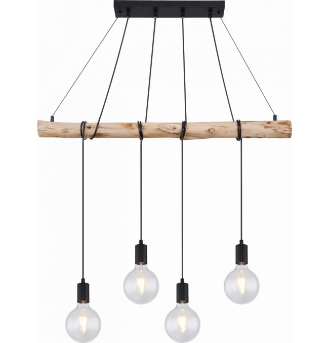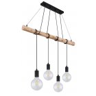 Lampa wisząca, metal czarny mat, drewno naturalne, kabel do owinięcia, Szer*Gł*Wys: 900*70*1200, nie zawiera żarówek 4xE27 60W 230V