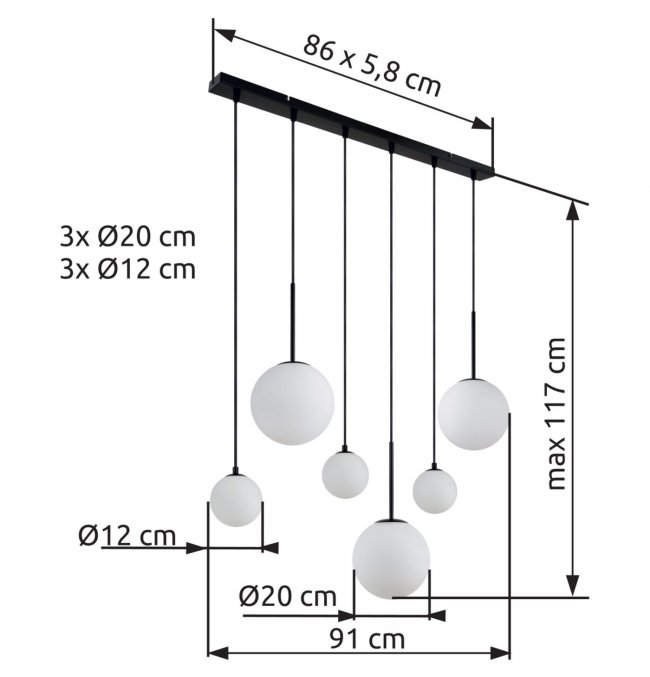 | Średnica/szerokość abażuru/klosza (cm): | 3x20|3x12 |