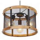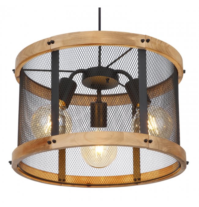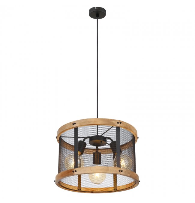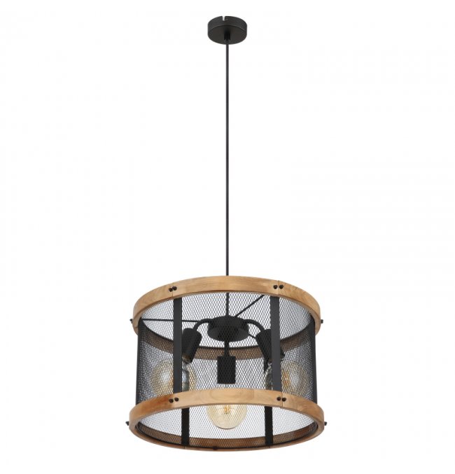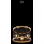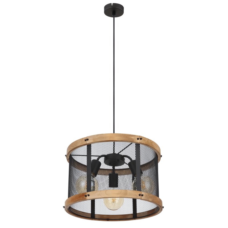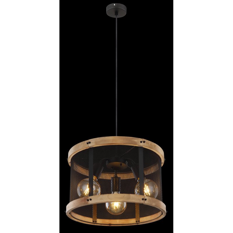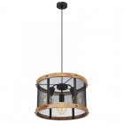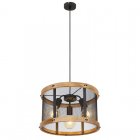 Lampa wisząca, metal czarny mat, drewno brąz, kabel tekstylny z regulacją wysokości, ?: 400 mm, Wys: 1200 mm, nie zawiera 3xE27, max. 40W 230V