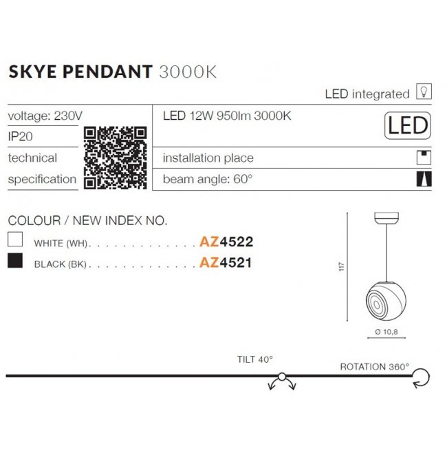 Lampa wisząca LED 12W SKYE AZ4522 Azzardo