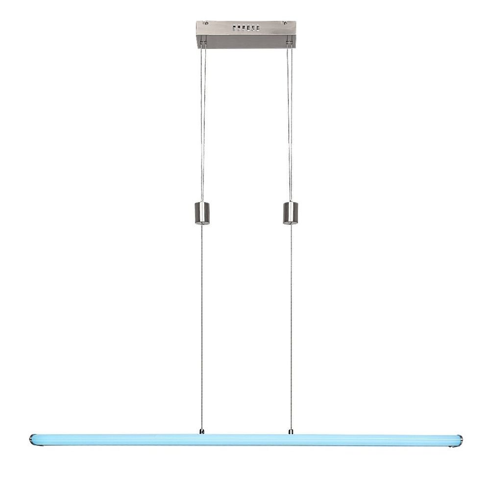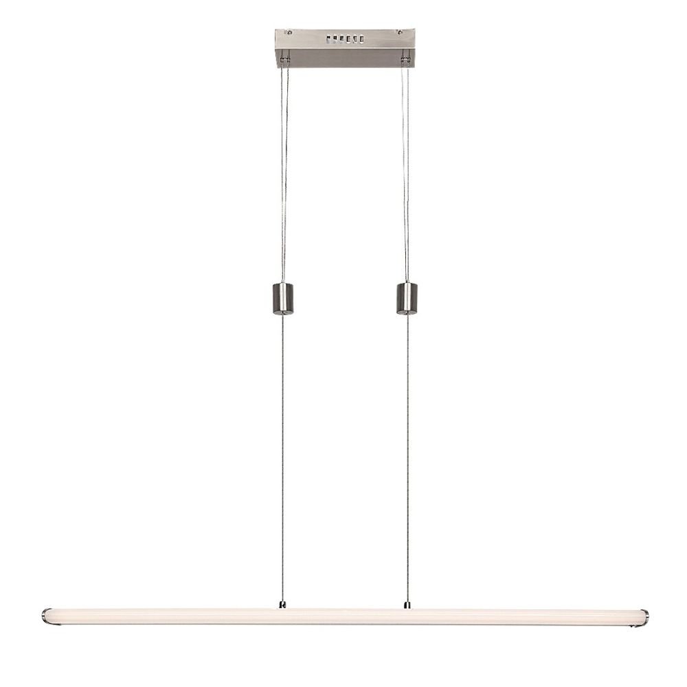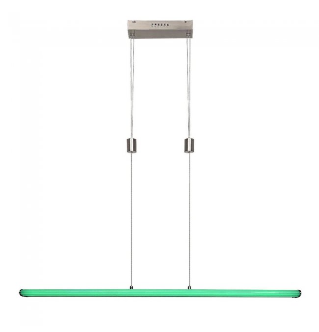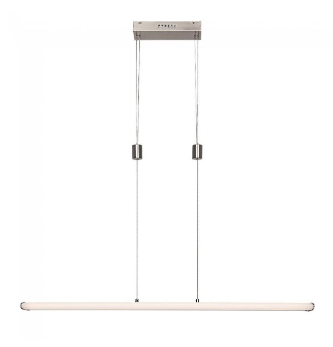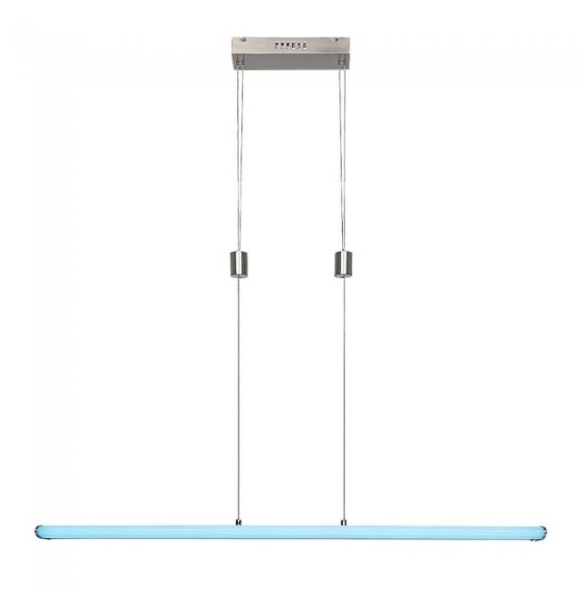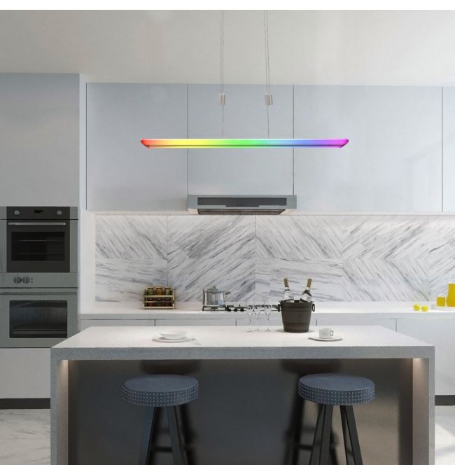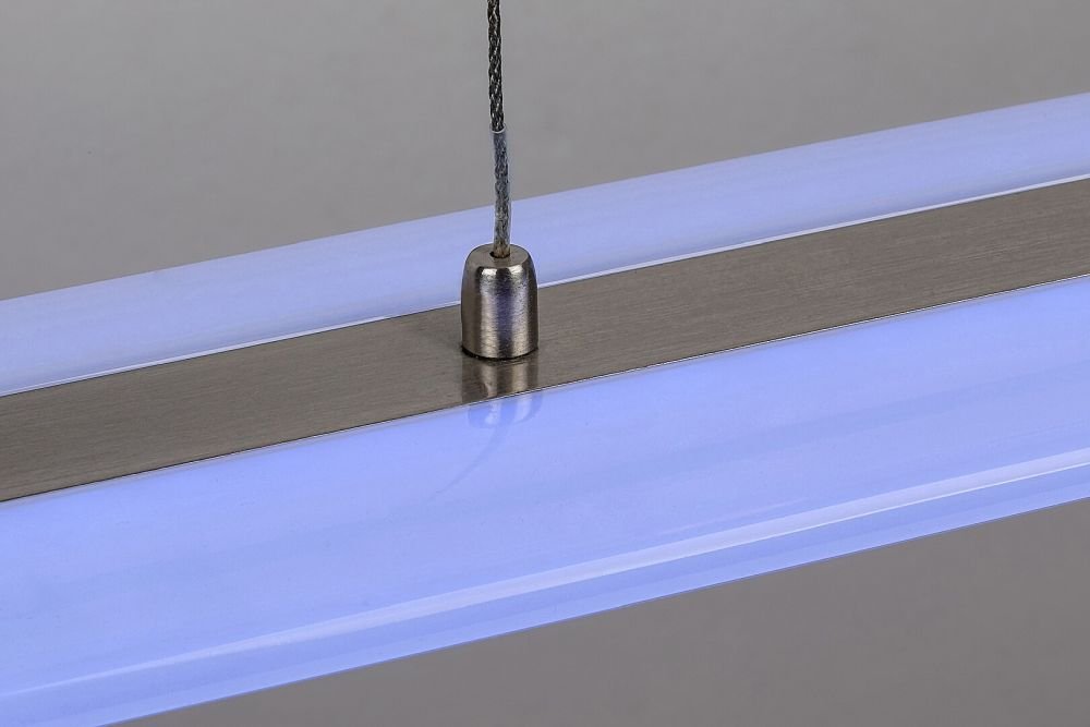 Proste wzornictwo i wiele dodatkowych funkcji oprawy wiszącej Temperius sprawiają, że oprawa ta jest popularnym wyborem do nowoczesnych jadalni. Wykonana z metalu oprawa w kolorze chromu satynowego jest uzupełniona białym kloszem z tworzywa sztucznego i prostokątną podstawą dekoracyjną. Światło jest zapewnione przez długi, płaski, poziomy element świecący. Oprawa Temperius posiada wbudowane źródło światła LED klasy energetycznej G o mocy 24 W, strumieniu świetlnym z kloszem - 1415 lumenów, bez klosza - 1950 lumenów. Trwałość źródła światła wynosi 25.000 godzin. Oprawa o temperaturze barwowej 3000K świeci ciepłobiałym światłem, jednocześnie oprawa posiada również możliwość świecenia w trybie RGB. Istnieje możliwość ściemniania oprawy Temperius, czyli zmiany natężenia światła. Dodatkowe funkcje oprawy to pamięć, timer i funkcja światła nocnego. Natężenie światła i funkcję pamięci można ustawić za pomocą pilota lub aplikacji mobilnej, natomiast timer może być regulowany za pomocą aplikacji mobilnej przez wifi lub Bluetooth. Szerokość oprawy wiszącej wynosi 1000 mm, wysokość 30 mm, zwis jest regulowany w zakresie od 800 do 1500 mm, a głębokość montażu wynosi 255 mm.