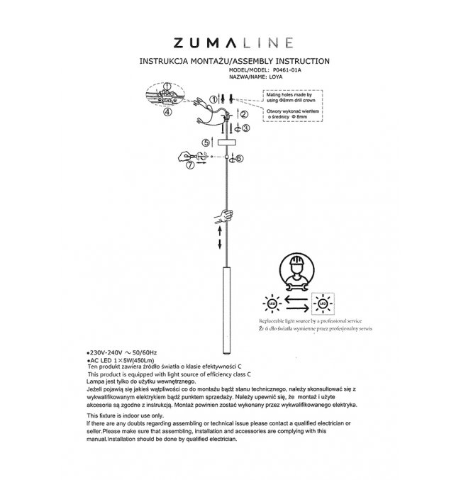 | Maksymalna moc żarówki (W): | 5 |