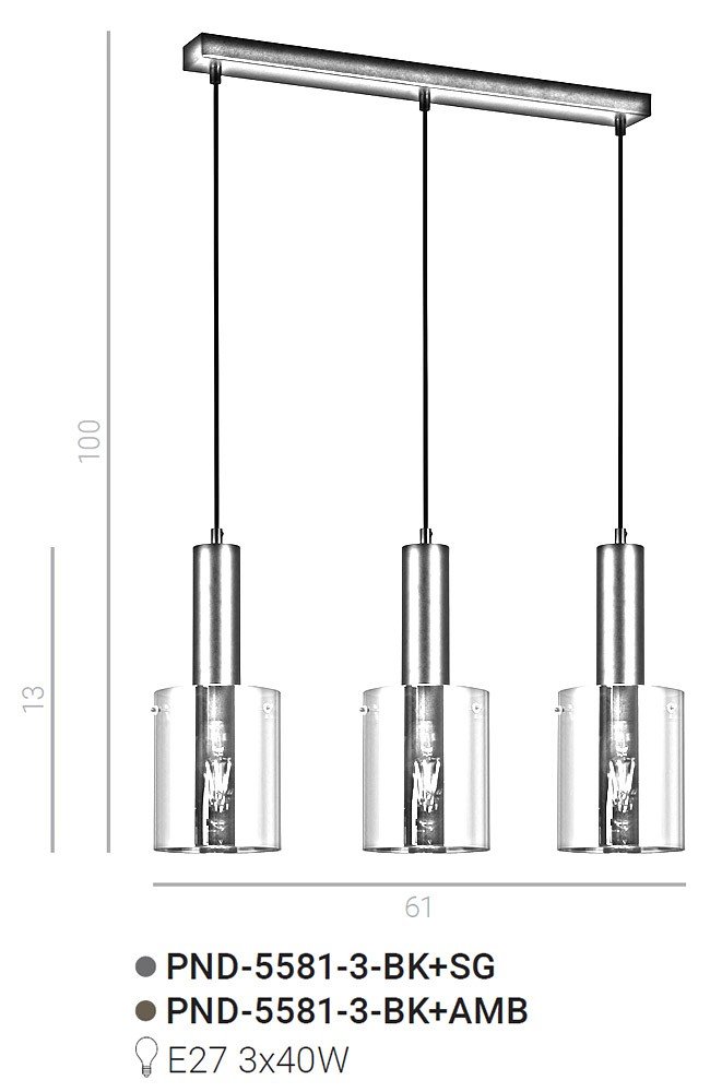 Lampa wisząca Sardo PND-5581-3-BK+AMB Italux