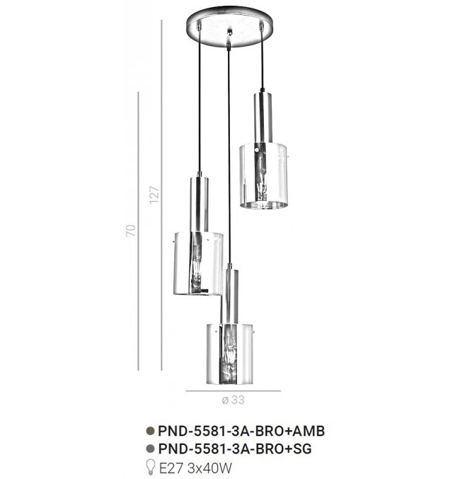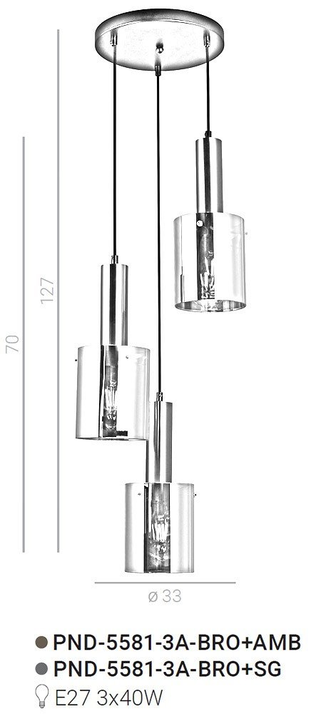 Lampa wisząca Sardo PND-5581-3A-BRO+SG Italux