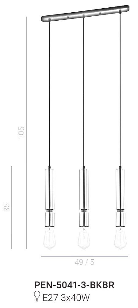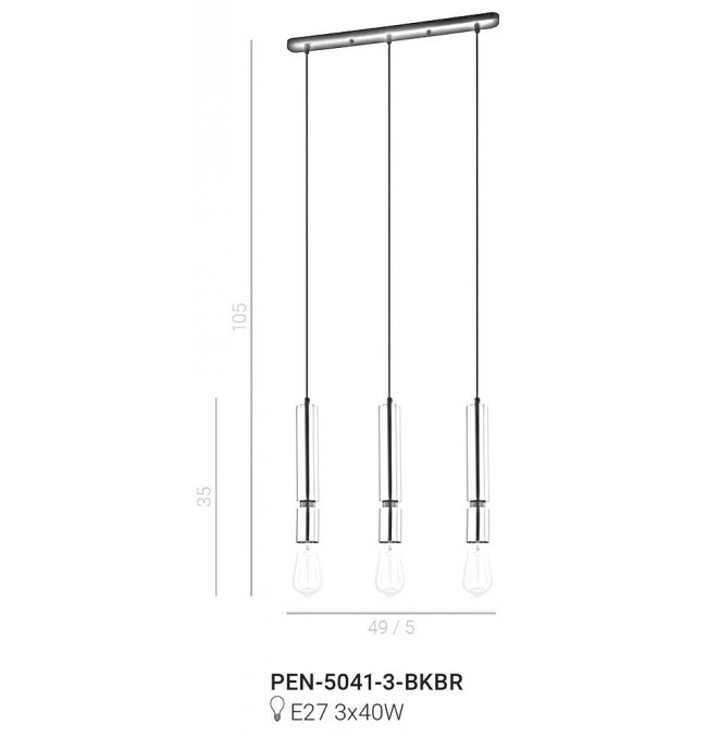 Lampa wisząca Torla PEN-5041-3-BKBR Italux