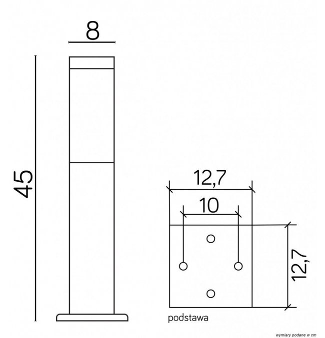 Lampa zewnętrzna słupek ogrodowy Inox Kwadratowa Black SS802-450 BL Suma