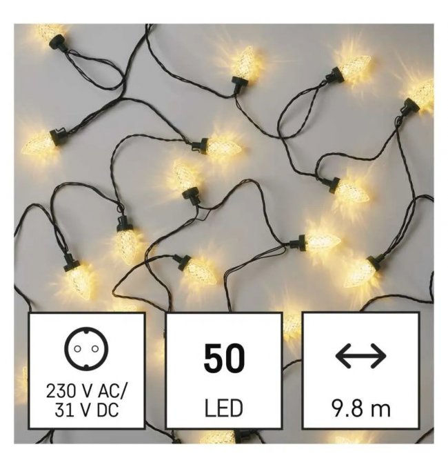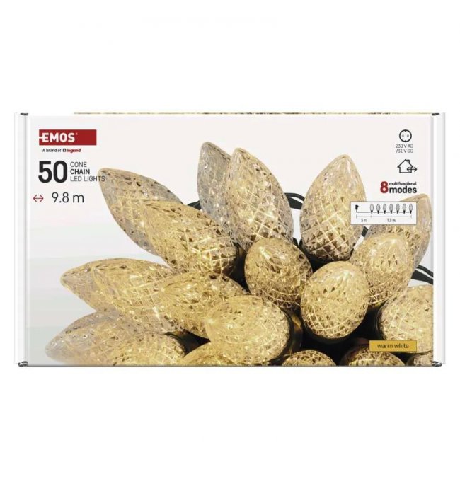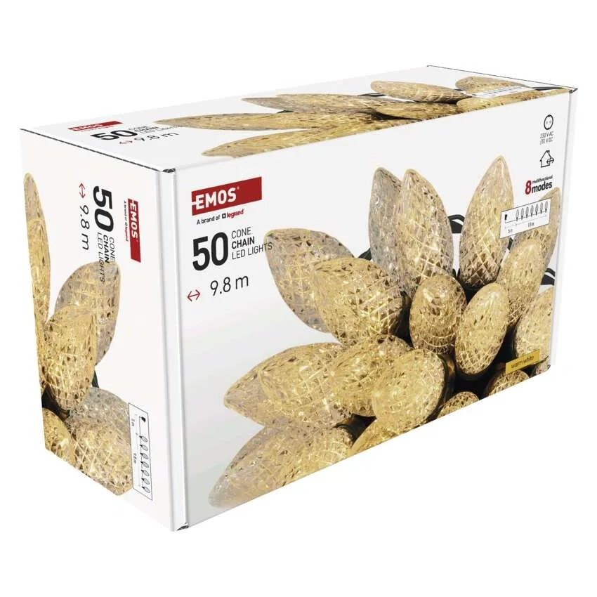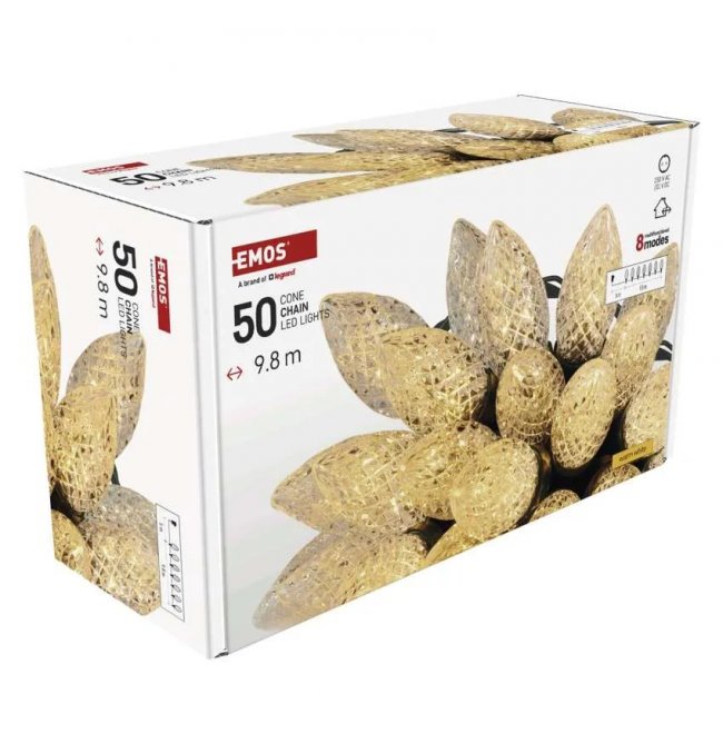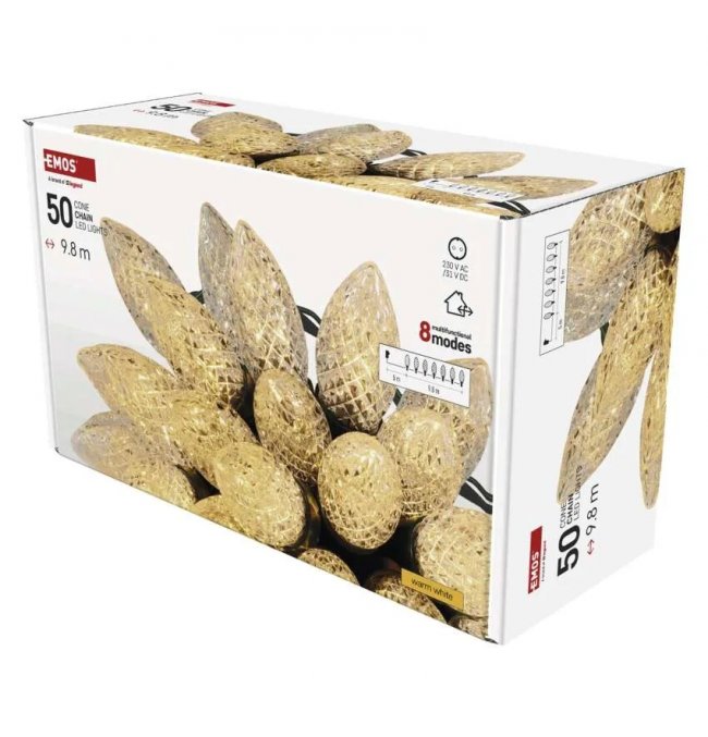 Lampki choinkowe IP44 50 LED 9,8m Classic Chain szyszki ciepła biel D5ZW01 EMOS