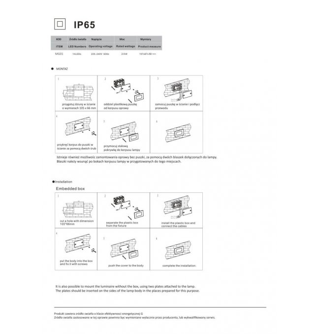 | Stopień ochrony: | IP65 |