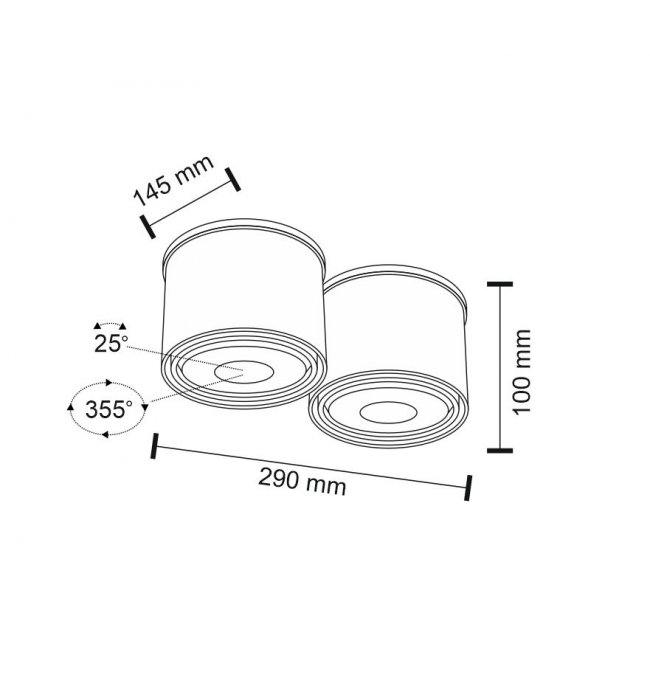 | Kąt rozsyłu światła: | 355°(kąt obrotu)|25°(kąt wychylenia) |