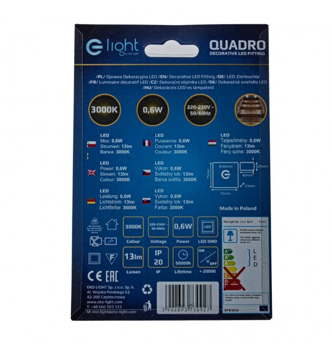 Oprawa schodowa LED 3000K QUADRO EKS0927 Eko-light