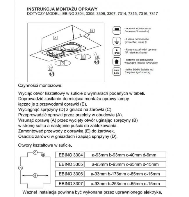 | Rodzaj: | Oprawy wpuszczane |