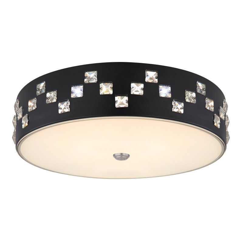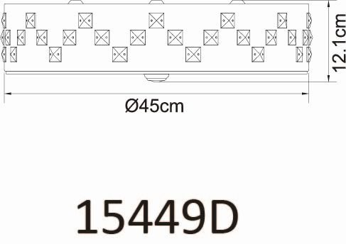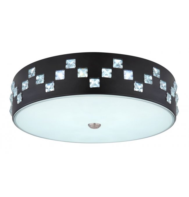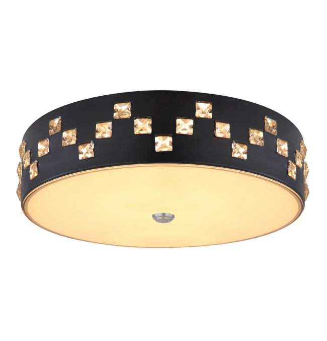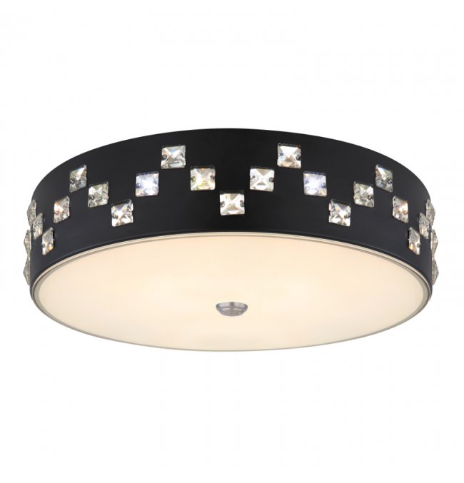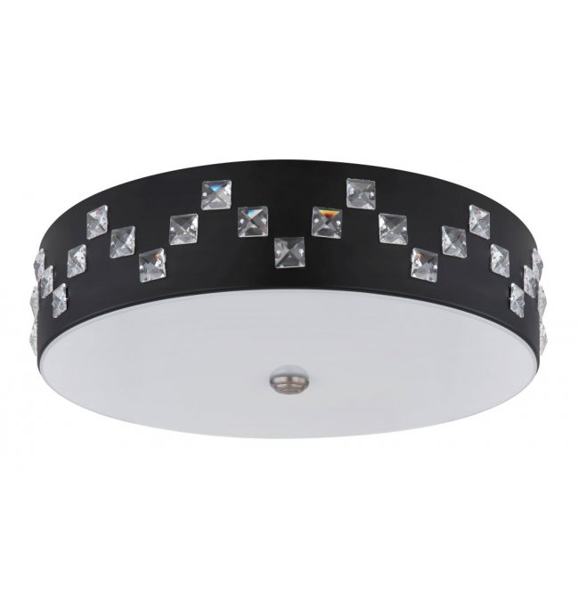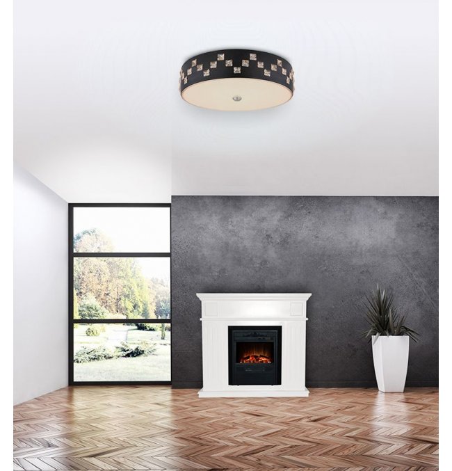 Plafon, metal czarny, szkło satynowe, kryształy K5 czyste, pamięć ustawień, ośw.nocne, ściemniacz, zmiana barwy, zdalne strowanie, Szer:450, Wys:120mm, LED 40W 230V, 2500lm, CCT 3000-6000K