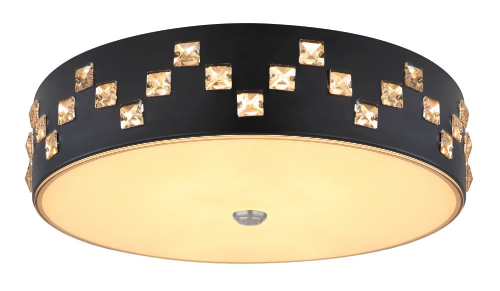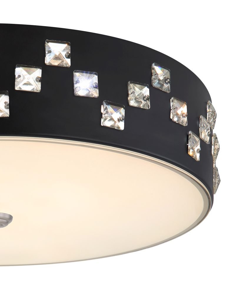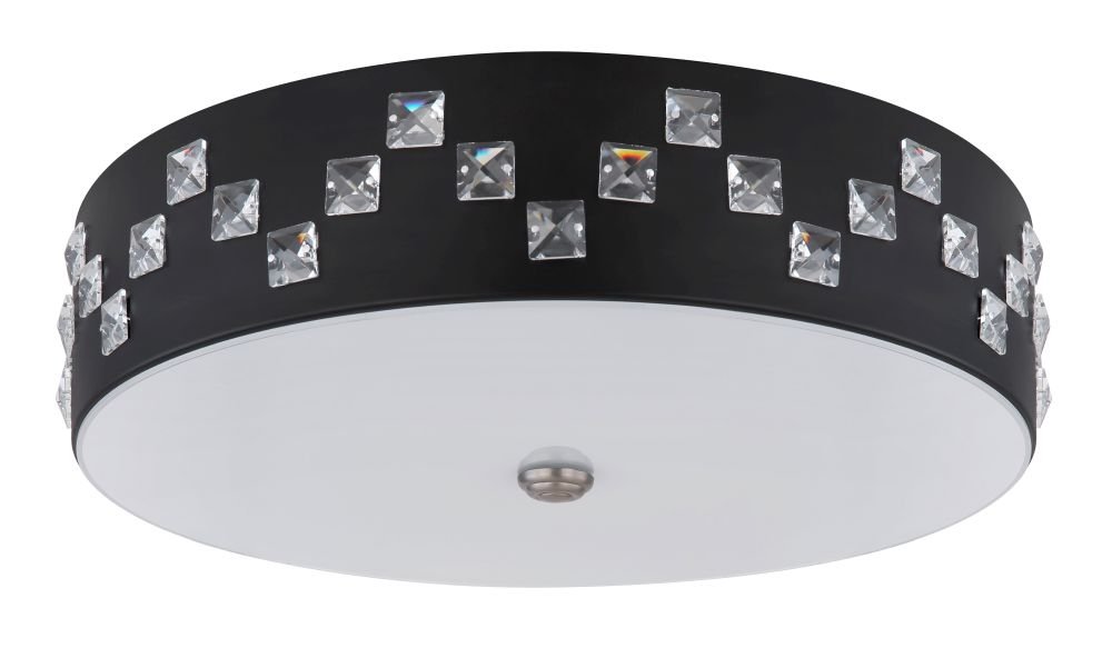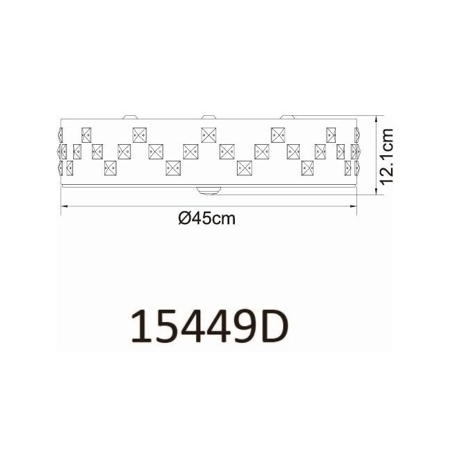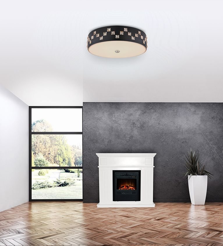 Plafon, metal czarny, szkło satynowe, kryształy K5 czyste, pamięć ustawień, ośw.nocne, ściemniacz, zmiana barwy, zdalne strowanie, Szer:450, Wys:120mm, LED 40W 230V, 2500lm, CCT 3000-6000K