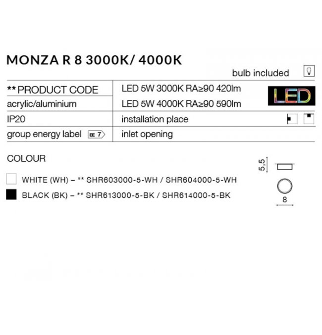 | Maksymalna moc żarówki (W): | 5 |