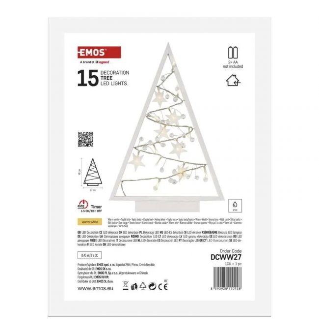 Świecąca choinka z ozdobami dekoracja na komodę 15 LED 40 cm IP20 ciepła biel DCWW27 EMOS