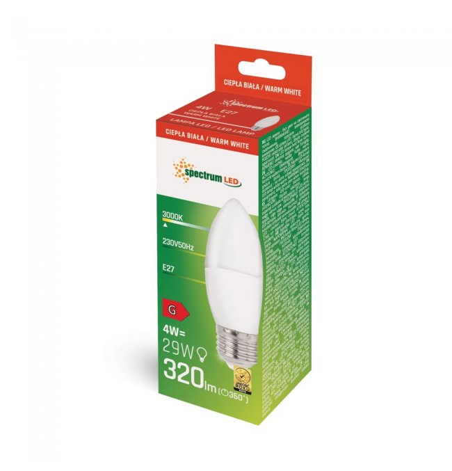 Żarówka LED Świecowa 4W E27 WW WOJ+13036_4W Spectrum
