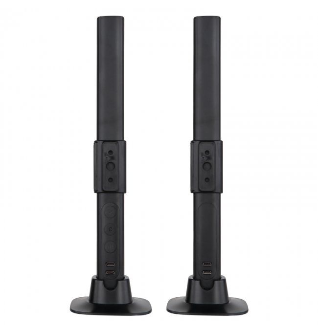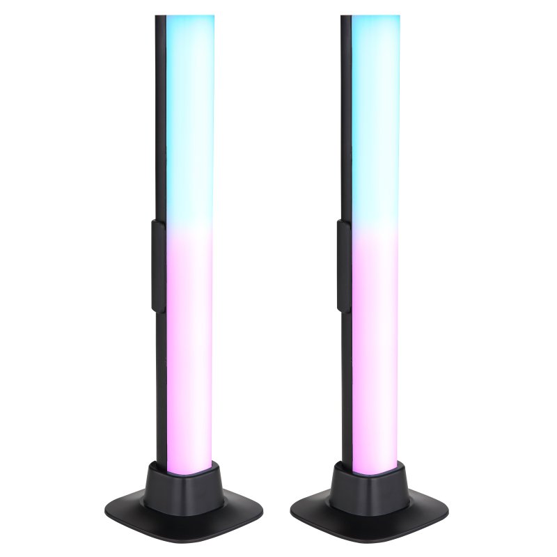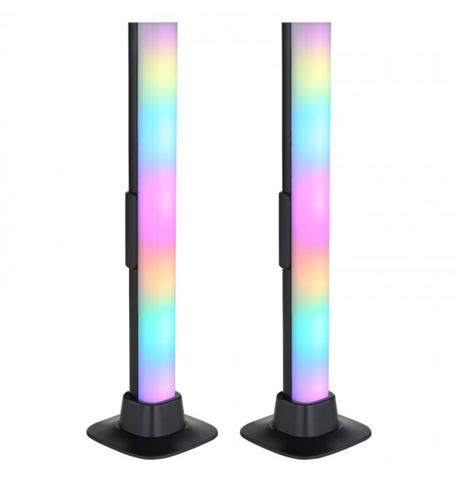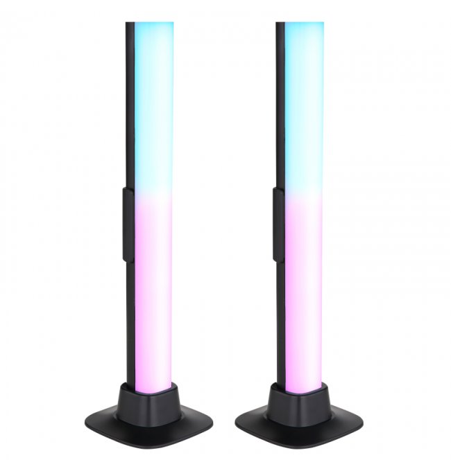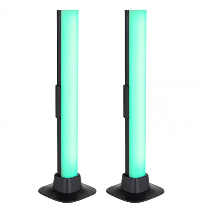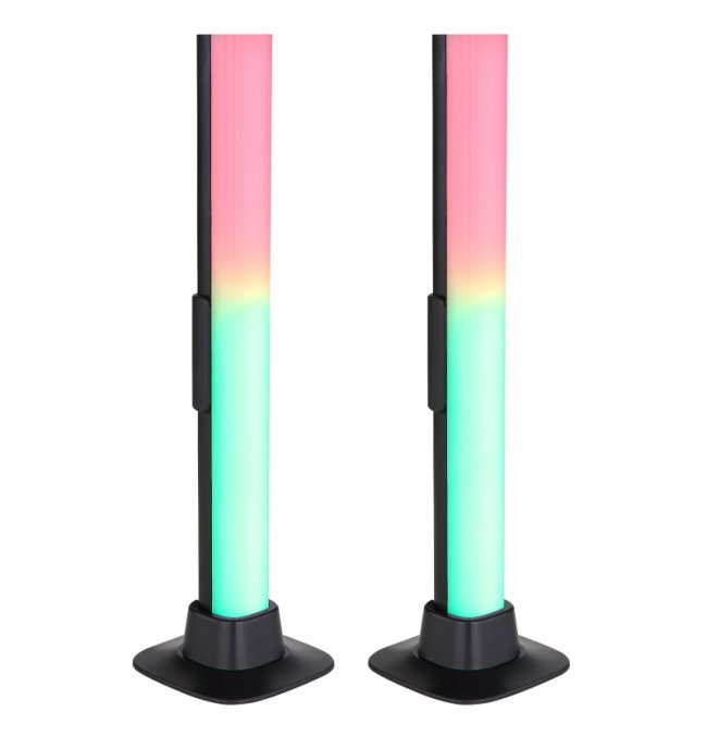 Lampa stołowa, tworzywo sztuczne czarny mat, opal, kabel PVC czarny, wyłącznik, możliwość ściemniania, RGB, efekt tęczy, SmartLight, kabel USB, Sz*G*W:30x30x325 mm, kabel 2000 mm, zestaw 2 szt., zaw. LED RGB 2,5 W 5 V