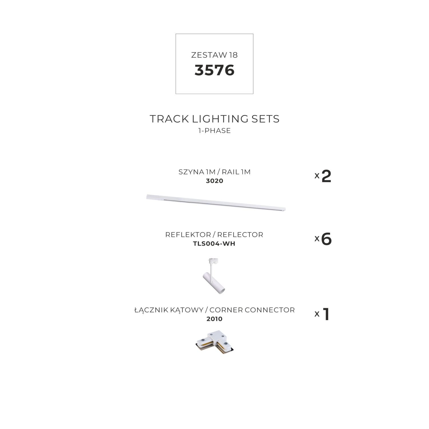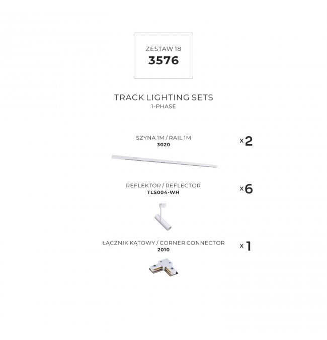 Zestaw L szynoprzewód 1x1m z reflektorami 1-fazowy 3576 Zuma Line